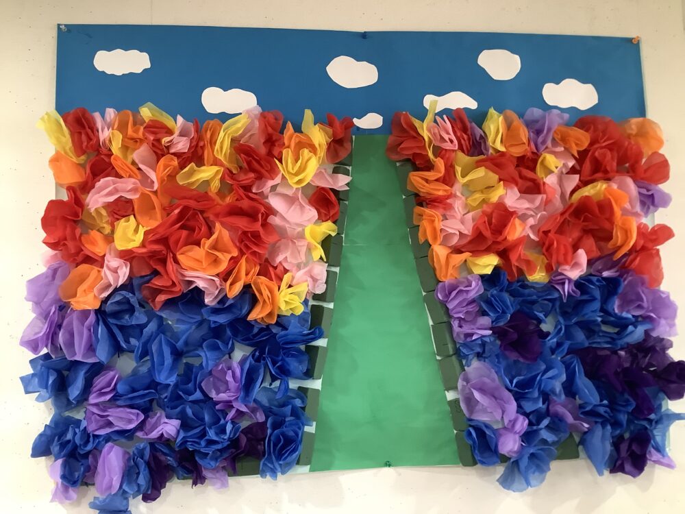 また来月に向けて、兜のお飾りと、皆さんで作製した工作レクも掲示しています(*’▽’)