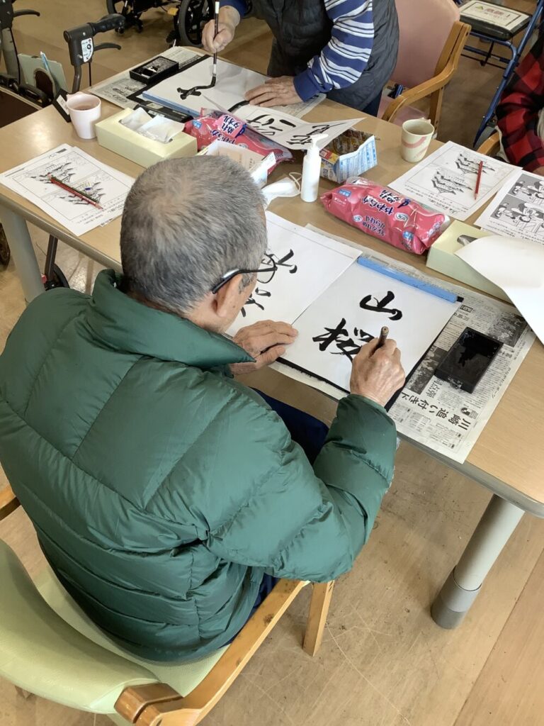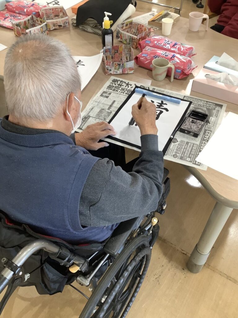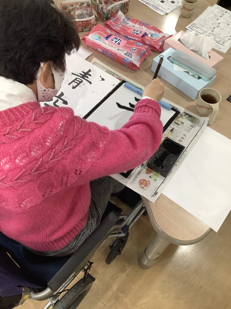 今日デイケアにお邪魔すると、ちょうど書道を行っている最中でしたので、同意を頂き、撮影させて頂きました。