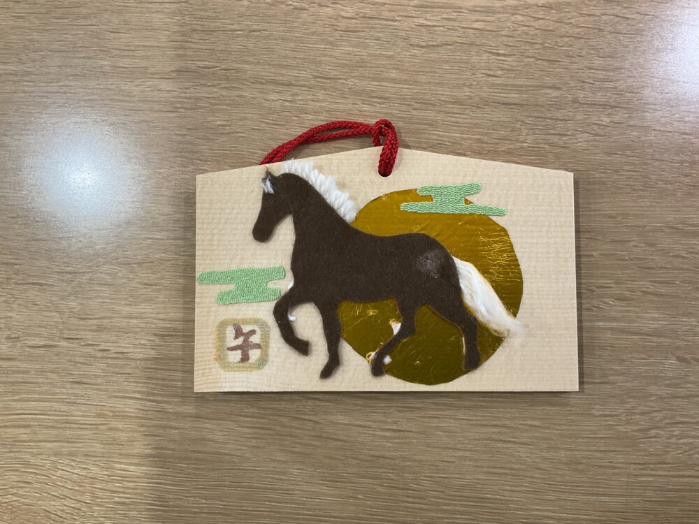 立派な絵馬の完成です。今回は作る過程~完成まで撮影させて頂きました。またデイケアでの作品作り今後も載せていければと思います。