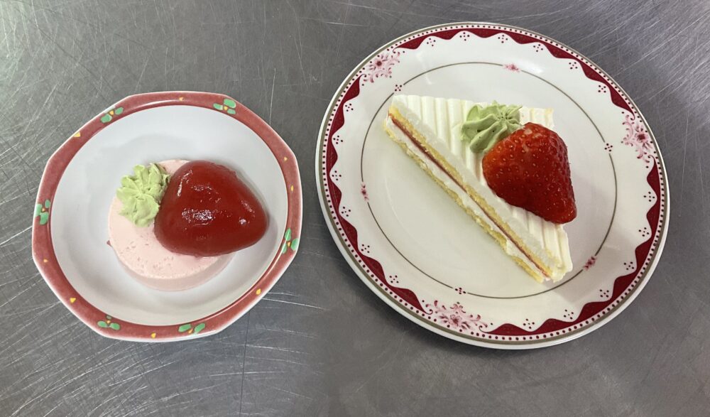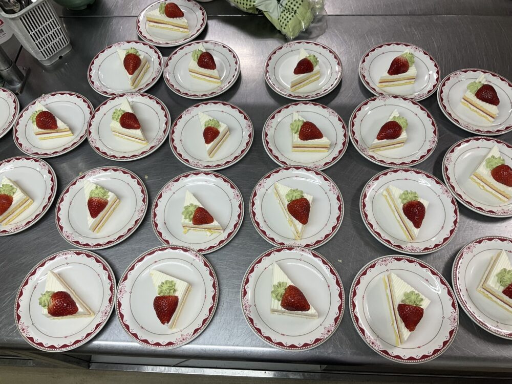 ミキサーやソフト食の方にも楽しんで召し上がって頂ける様に、左皿のデザートで提供させて頂きました(*´ω`*)