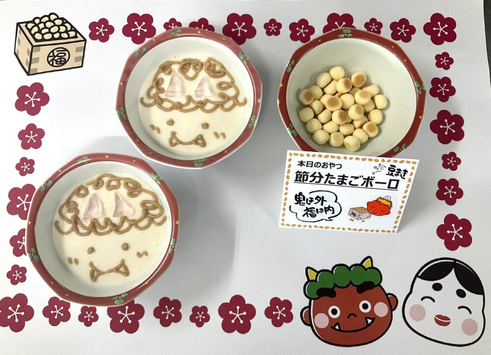 豆ではなく、節分たまごボーロとして皆さんに召し上がっていただきました⭐