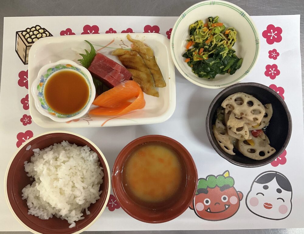 そんな中、けいあいの郷西谷では節分メニューを今年も皆様に召し上がっていただきました(*^▽^*)